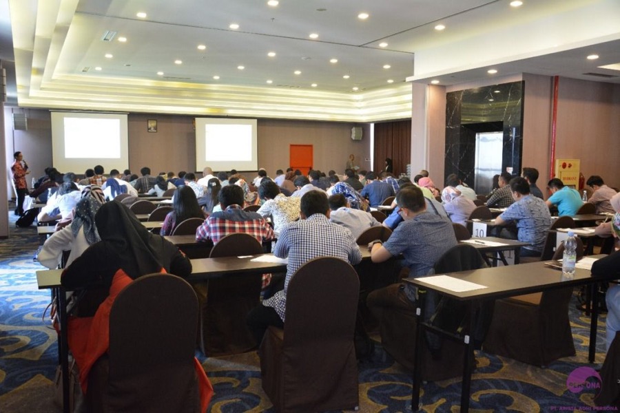 Assessment berbasis sejumlah kompetensi yang disepakati terlebih dahulu. Mengacu pada pengukuran multi dimensi, multi rater, dan multi tools — berlandaskan behavioral assessment melalui aktivitas simulasi.